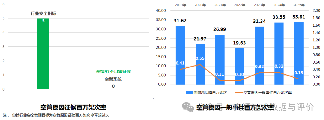 截至2025年9月底,空管系统连续97个月保持空管原因零征候的安全运行纪录,本年度空管原因一般事件百万架次率为0.15。