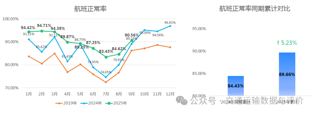 2025年1-9月,旅客吞吐量占全国0.2%(含)以上机场平均放行正常率90.69%,较去年同期↑3.34个百分点。