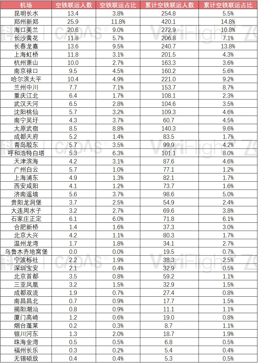 数据说明:铁路数据部分来自交通运输部,最新月度数据来源于CADAS,空铁联运数据来自CADAS。