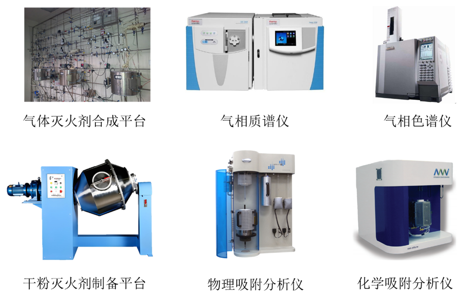 本平台主要开展清洁化学气体和超细干粉等先进灭火材料的高效合成制备研究,为新一代“哈龙”灭火剂替代产品的开发和新能源火灾安全防控提供关键技术保障。平台功能涵盖灭火材料的制备和分析表征,主要设备包括:气相催化合成平台、干粉灭火剂制备平台、气相质谱仪、气相色谱仪、物理吸附仪、化学分析仪等。