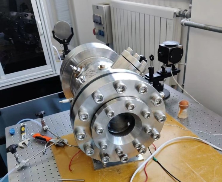 定容燃烧弹实验平台能够模拟真实的火灾环境中的燃烧过程,主要作用是测量火焰的层流燃烧速度及灭火剂的抑制燃烧速度和爆炸超压性能。定容燃烧弹实验平台主要包括定容弹弹体,纹影系统,压力传感器,进排气系统和点火装置这五个部分,同时为了应对不同的测试环境增加了温度控制系统,用来控制环境温度。燃烧弹容器具有高温、高压和隔热性能,能够承受高温和高压的燃烧气体,并保证实验过程的安全性。定容燃烧弹实验平台在研究火灾防护材料、燃烧机制和火灾模拟等方面具有重要作用。
