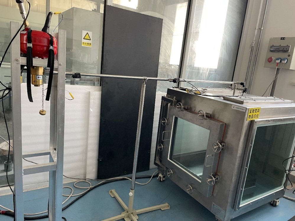 锂电池热失控抑制实验平台由防爆箱、加热箱、数据记录仪和车载灭火装置组成,可开展气体、粉体等灭火剂抑制锂电池热失控的性能研究。车载灭火装置通过多种传感器实时监测动力锂电池箱内的环境参数,并根据电池热失控模型可对电池箱内的热失控电池进行早期预警和及时防护。