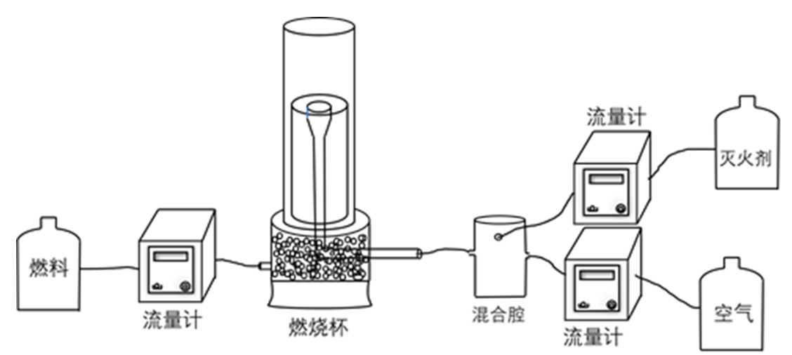 燃烧杯实验平台可测试化学气体灭火剂的灭火浓度,满足国标ISO-14520的设计标准,实验平台由三个主要部分组成:供气系统、气体混合室和标准杯形燃烧器。