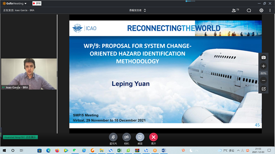 刘俊杰、袁乐平两位老师深度参与,长期服务于国际民航组织安全管理专家组。一年多来,我院两位教师克服蒙特利尔与北京时之间的13个小时时差,坚持参加了历次小组会、SMP大会。2022年1月以来,两位教师参加会议超过20场次,审阅、修订相关文件30余份。在SMP 5大会上,袁乐平老师向大会提交的工作文件《WP/9 PROPOSAL FOR SYSTEM CHANGE ORIENTED HAZARD IDENTIFICATION METHODOLOGY》受到与会代表的认可,收到了积极反馈。