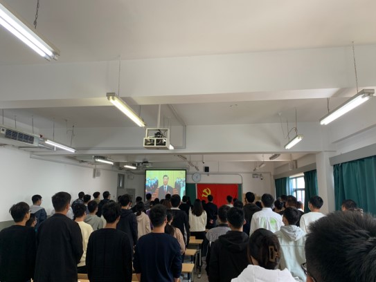 学生党支部在教室集中观看开幕会