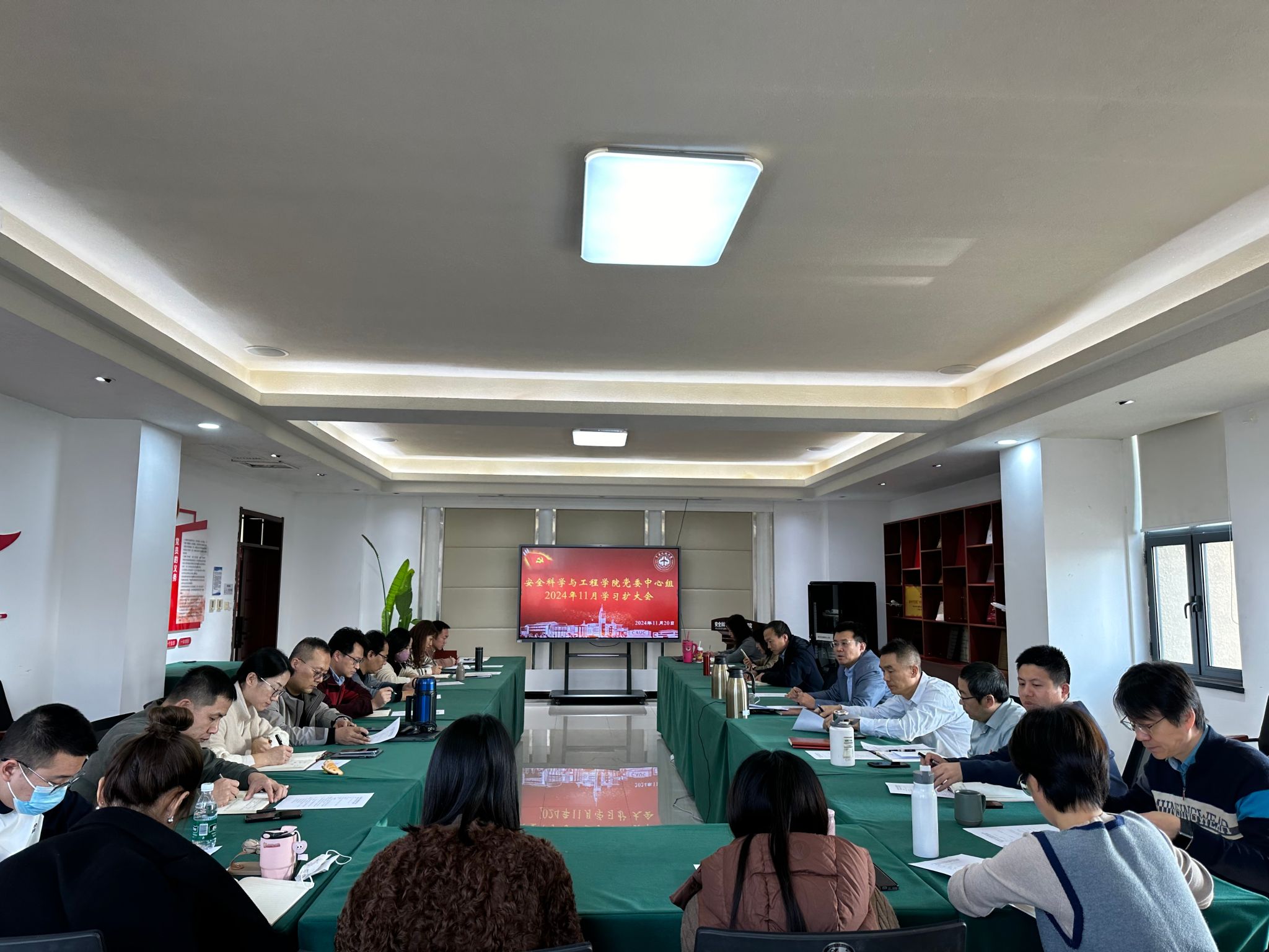 11月20日下午,安全科学与工程学院党委理论学习中心组召开集体学习(扩大)会。学院党委理论学习中心组成员、科级干部、系主任、各部门负责人参加会议。
