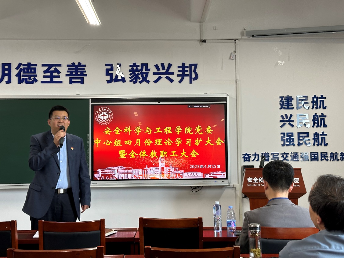 4月25日下午,安全科学与工程学院党委在403会议室,召开中心组四月份理论学习扩大会暨全体教职工大会。学院党委开展深入贯彻中央八项规定精神学习教育,同时特邀计算机学院院长李海丰教授,开展“人工智能与智慧民航的研究思考”专题讲座,并全面部署学院近期重点任务。学院全体教工参加会议。