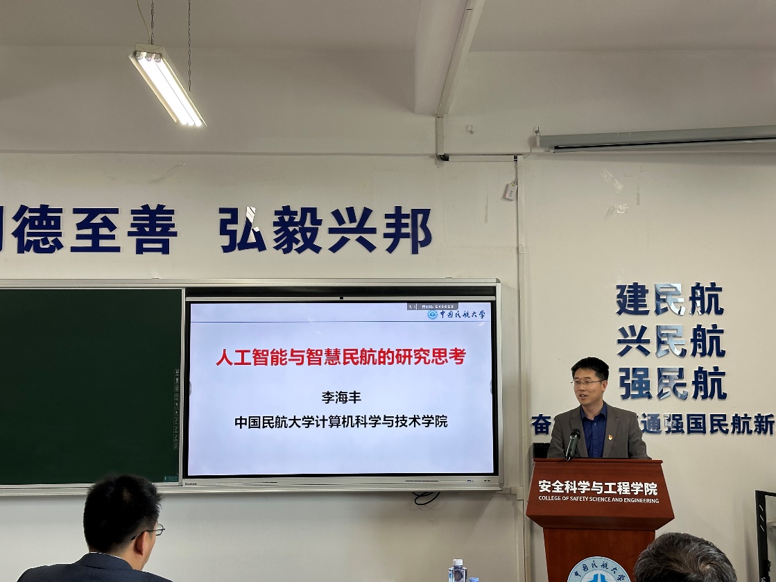 会议严格落实“第一议题”制度,与会人员认真学习《新思想引领新征程——人工智能创新加速我国产业转型升级》视频,深刻领会人工智能技术对国家产业升级的战略支撑作用。李海丰院长在专题讲座中,针对人工智能概论、智慧民航案例以及AI赋能教育初探三方面展开讲解,分享了人工智能领域的最新研究成果和应用案例,为学院教师如何在教学和科研中更好地运用人工智能提供了新思路。