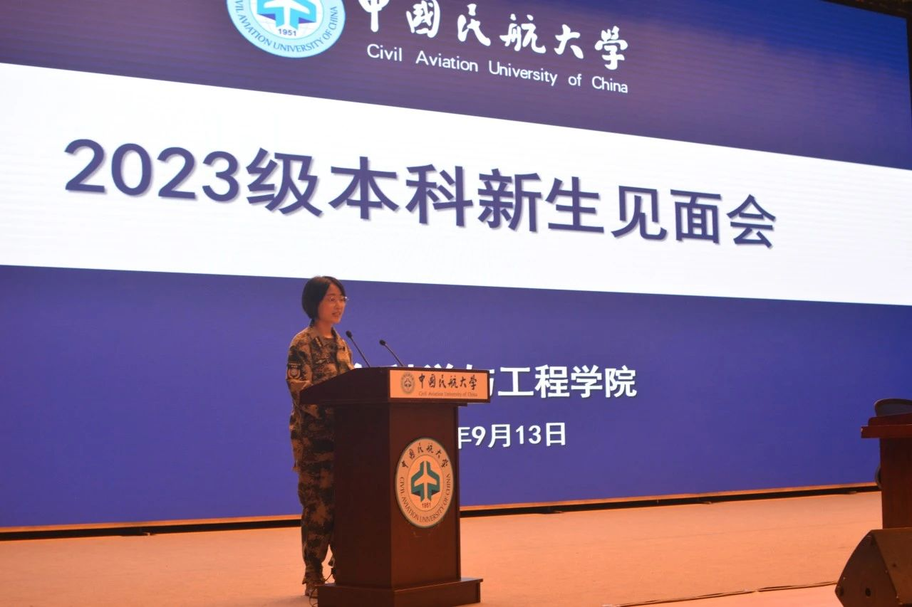 会议由张博书记的致辞开始,张书记与在场新生亲切互动,提出军训是大学生活的序幕,也是对意志、身体的考验,要求同学们严肃对待。接着张书记向新生们介绍学院概况,从历史、现状、未来三个角度依次分析,启示新同学们铭记中国民航的艰辛发展历程,不忘初心,充分利用学校优势师资力量、实验室资源,在三期叠加的复杂时代背景下努力解决民航技术“卡脖子”问题,激流勇进、敢于担当。张书记送给新生四个“自”,即自信、自律、自强、自省,鼓励新生同学走好人生奠基之路,探索知识,放飞梦想,胸怀天下, 展翅高飞。