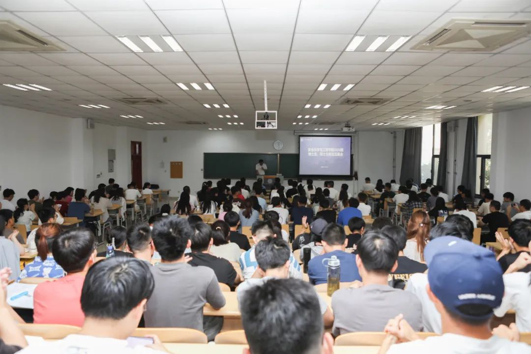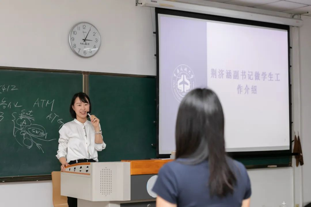 最后,由院党委副书记荆济涵老师做学生工作介绍。荆老师循循善诱,启发了硕士、博士研究生们对于认识人生新阶段的思考。同时,强调了做学术与做人的同等重要性。做学术的同时,也要学会与老师和同学们交流,提升自己的综合素质,并且积极参与各类活动和竞赛。熟记于心,落实于行。最后荆老师向大家表达了真挚的祝愿:“系好人生的第一粒扣子,用理想逐梦蓝天,用奋斗照亮未来,做好自己人生的第一责任人。”