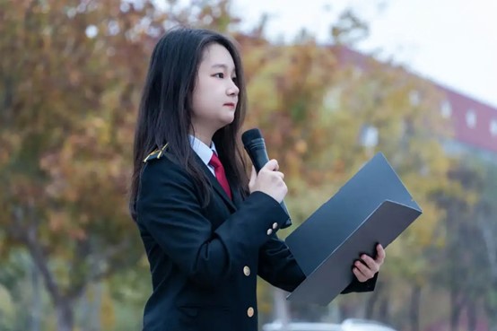 升国旗仪式结束后,刘梦寒同学进行了国旗下演讲。演讲者用激昂的话语,讲述了对空军建军节的感悟,表达了对老一代民航人艰苦付出的崇敬。演讲者提到,先辈们的英勇付出奠定了如今的国泰民安,他们努力拼搏的精神时刻激励着我们奋发图强。历史的年轮滚滚向前,传承薪火,生生不息。我们应时刻铭记党和国家对我们的培养,用自己的智慧和力量去推动社会的进步和发展。