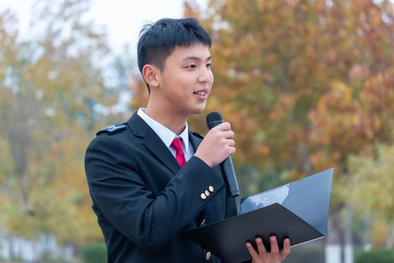 最后,主持人王涵同学呼吁全体同学铭记空军英姿,传承两航精神,秉承“明德至善,弘毅兴邦”的校训,脚踏实地,勤奋学习。同时,她代表全体新生表达了对祖国繁荣昌盛的美好祝愿,为本次升旗仪式画上完美的句号。
