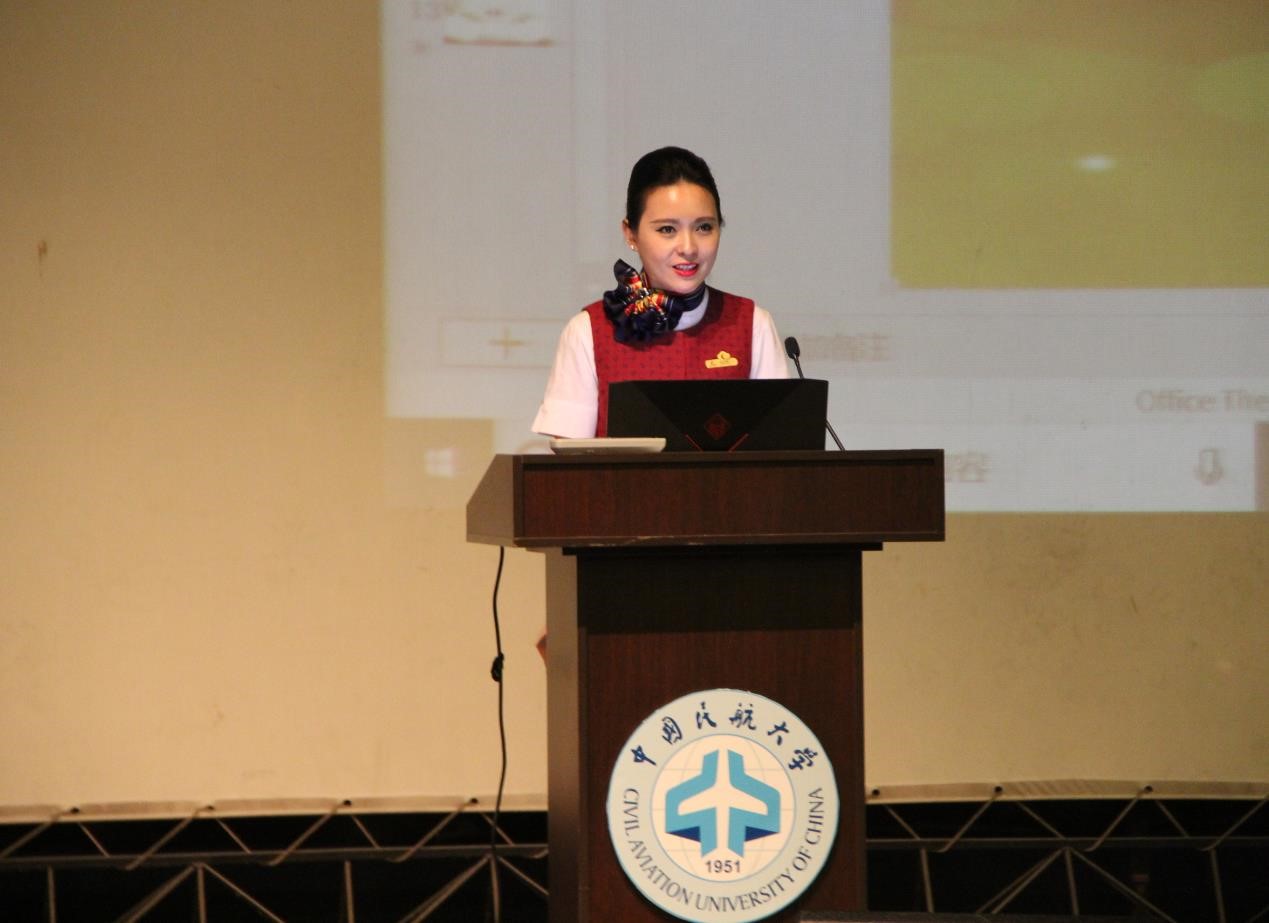 6月14日下午,“弘扬践行当代民航精神,做真情服务民航人”时代楷模国航金凤组中航大校友报告会在北院礼堂召开,国航第16届金凤组主任乘务长、乘务学院2006届毕业生徐文婷,外国语学院2005届毕业生陈巍、乘务学院2007届毕业生王迪、2012届毕业生董立等4位金凤组成员分别发言。
