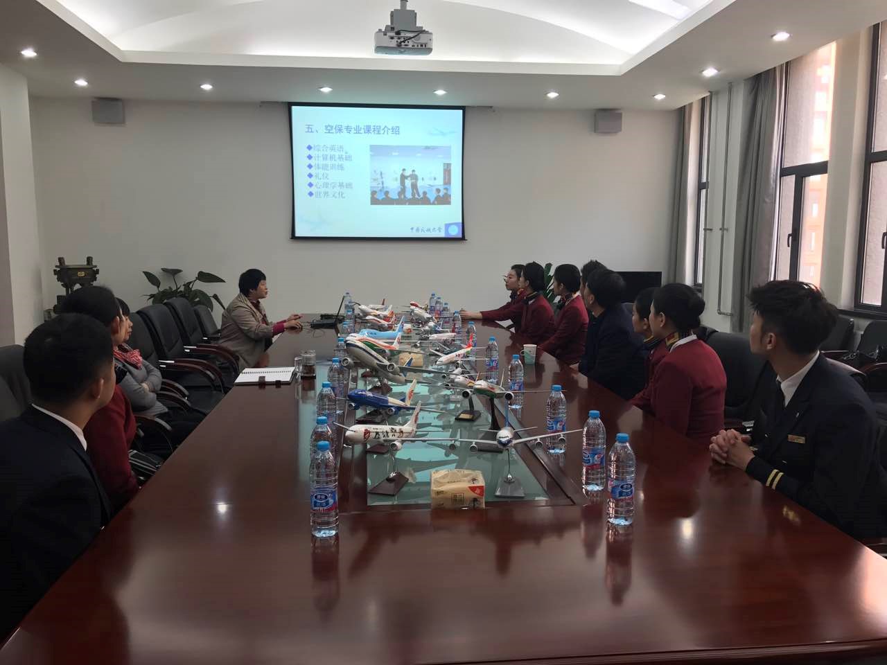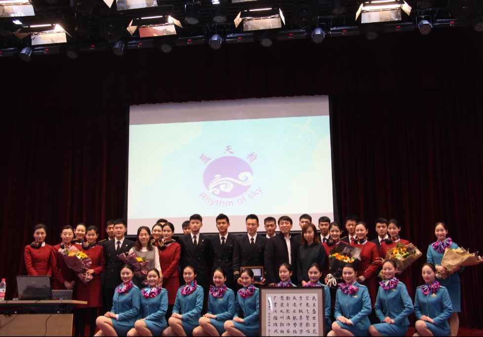 3月29日,乘务学院03届优秀校友彭凌携国航乘务管理一部“蓝天韵”乘务组14名优秀组员来访中航大乘务学院,开展为期一天的交流活动。