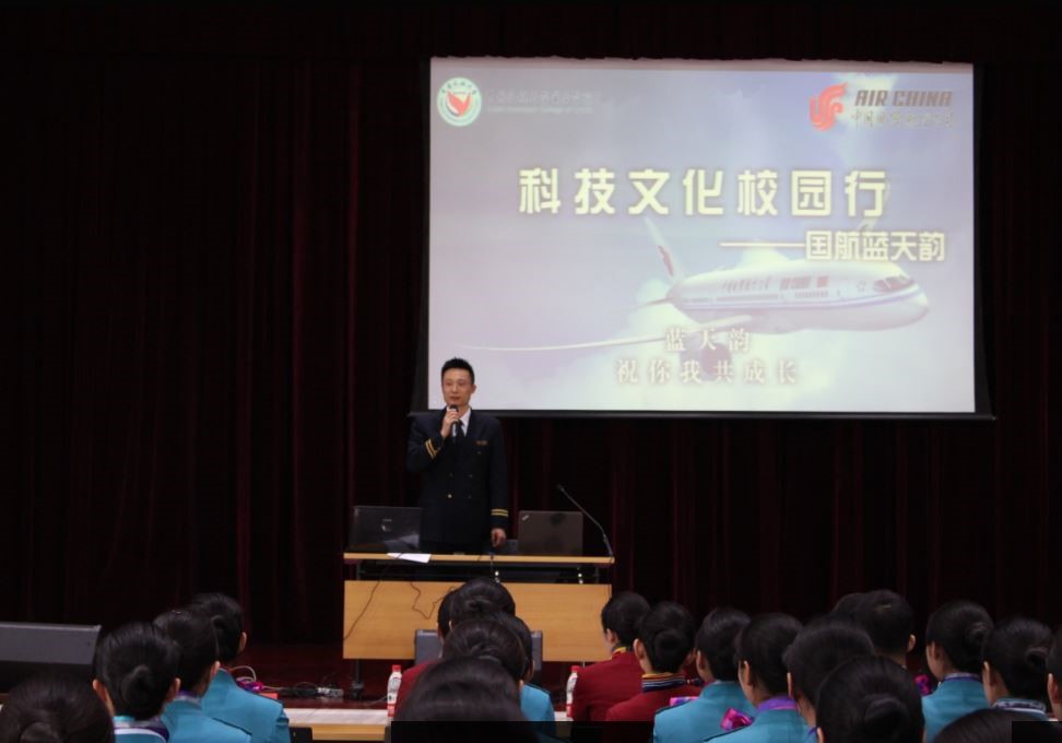 下午两点,“蓝天韵”乘务组在至善苑多功能厅向乘务学院学生分享了飞行经历,与学生开展热烈的交流,并向乘务学院赠送“金风工作法”。03届校友、彭凌主任乘务长向在场学生分享在航大的学习经历和在国航的工作经历,并介绍了国航客舱部与蓝天韵乘务组。08届校友宋春晓、09届校友李小如、12届校友徐更实分别发言,分享“金凤工作法”及自己在飞行过程中的点滴,大家受益匪浅。乘务管理一部高级经理方星慧和学生现场进行英语提升交流,他着重强调了英语对乘务员的重要性,表明在乘务行业中,语言是服务的基础,并对同学们提出要求和鼓励。