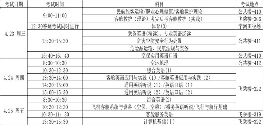 返校报到时间:2025年4月23日8:30在乘务学院教务科(宁河校区飞乘楼-416)报到,领取补考准考证。请各位同学考前一天到达天津,保证按时参加考试。