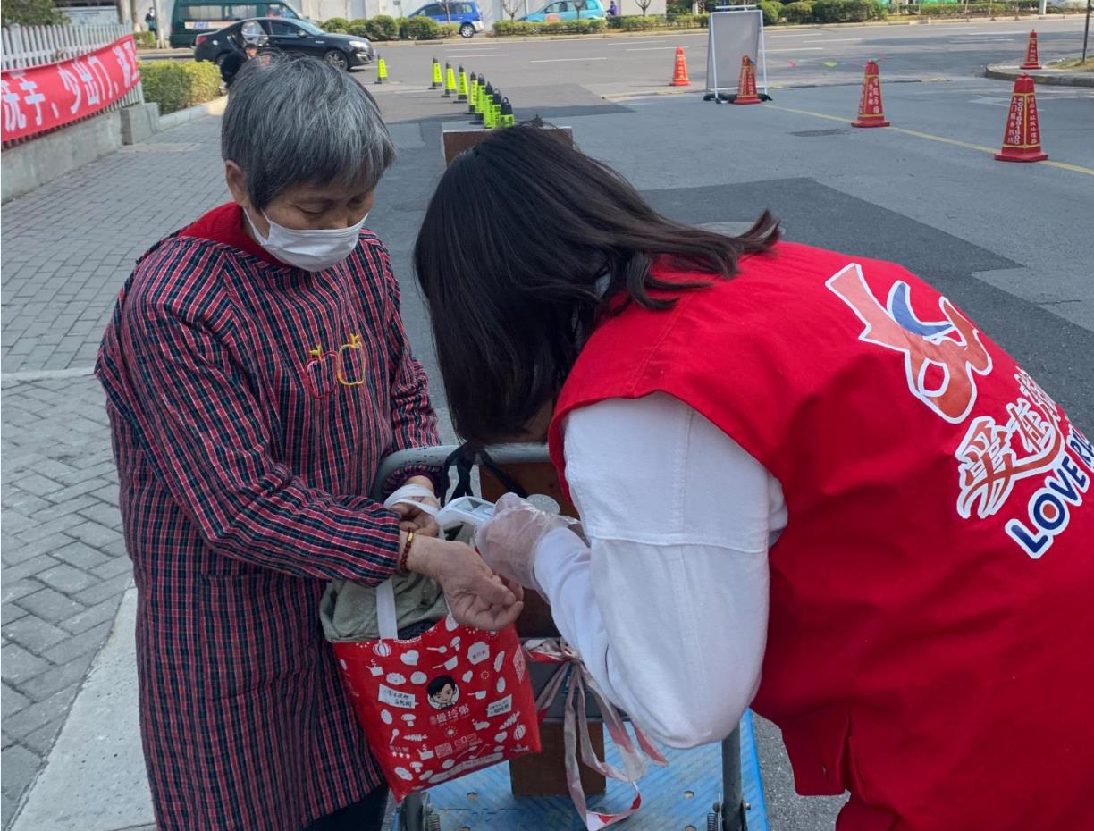 瞿陈露在小区门口进行志愿服务