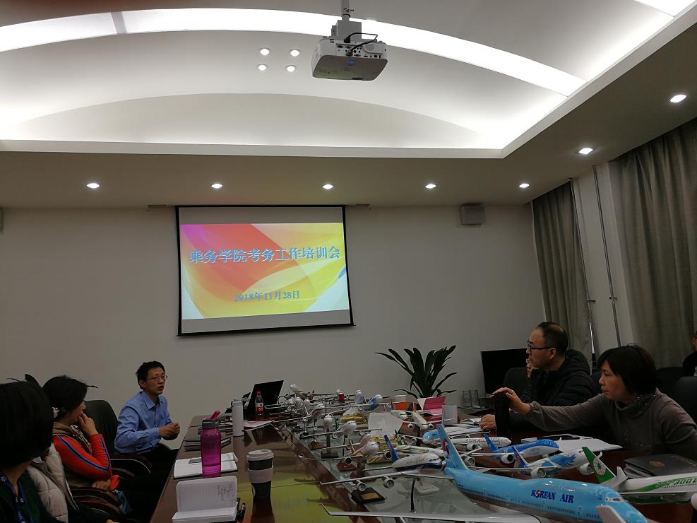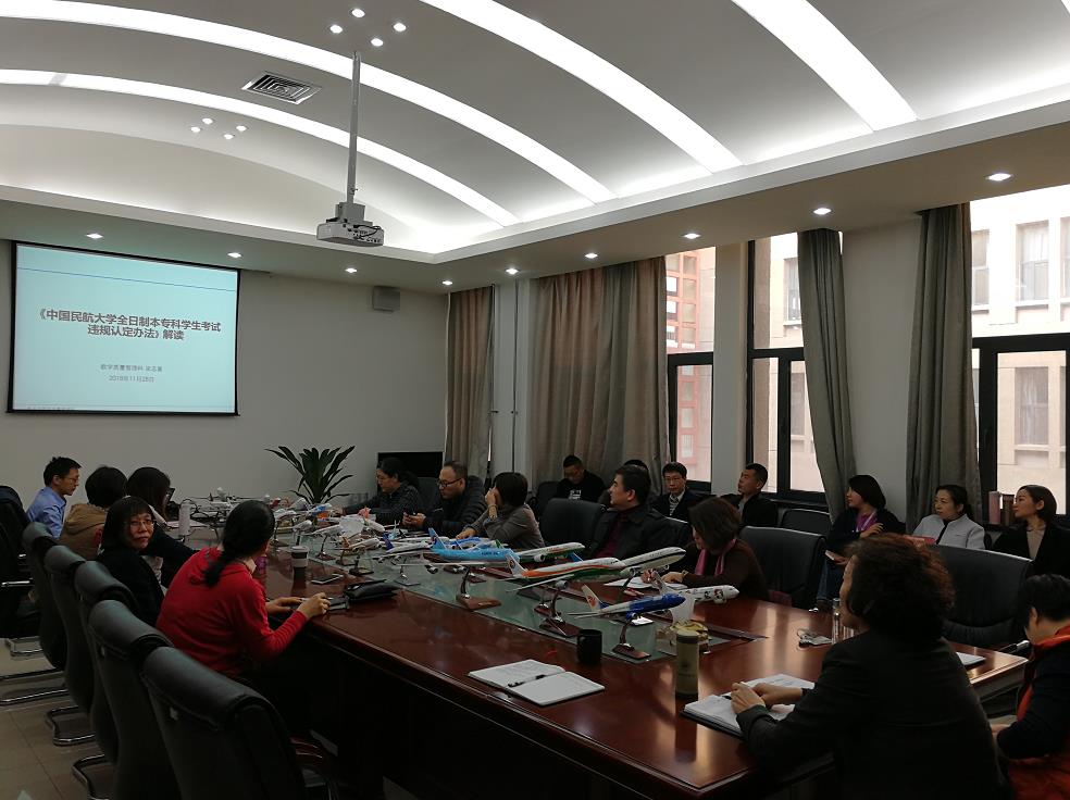 11月28日下午,乘务学院召开期末考试考务培训会,邀请学校教务处教学质量管理科梁志星做《中国民航大学全日制本专科学生考试违规认定办法》解读的专题讲座,院长赵虹主持。