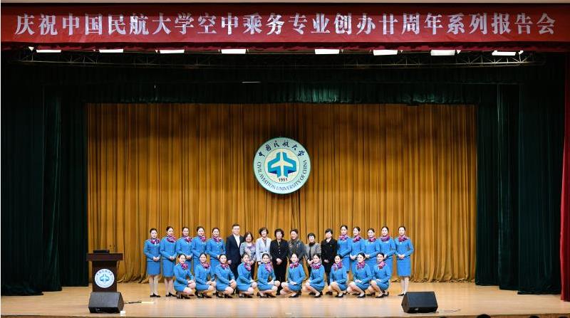 3月29日下午,空中乘务专业创办廿周年系列活动暨首场报告会在学校礼堂隆重举行,中国航空运输协会理事长助理兼客舱乘务委员会主任冯润娥、我校杰出校友、原国航股份副总裁、原南航集团副总经理杨丽华做专题报告,报告会由乘务学院党委书记刘冰主持,学院教师、空中乘务专业学生共700余人聆听报告。