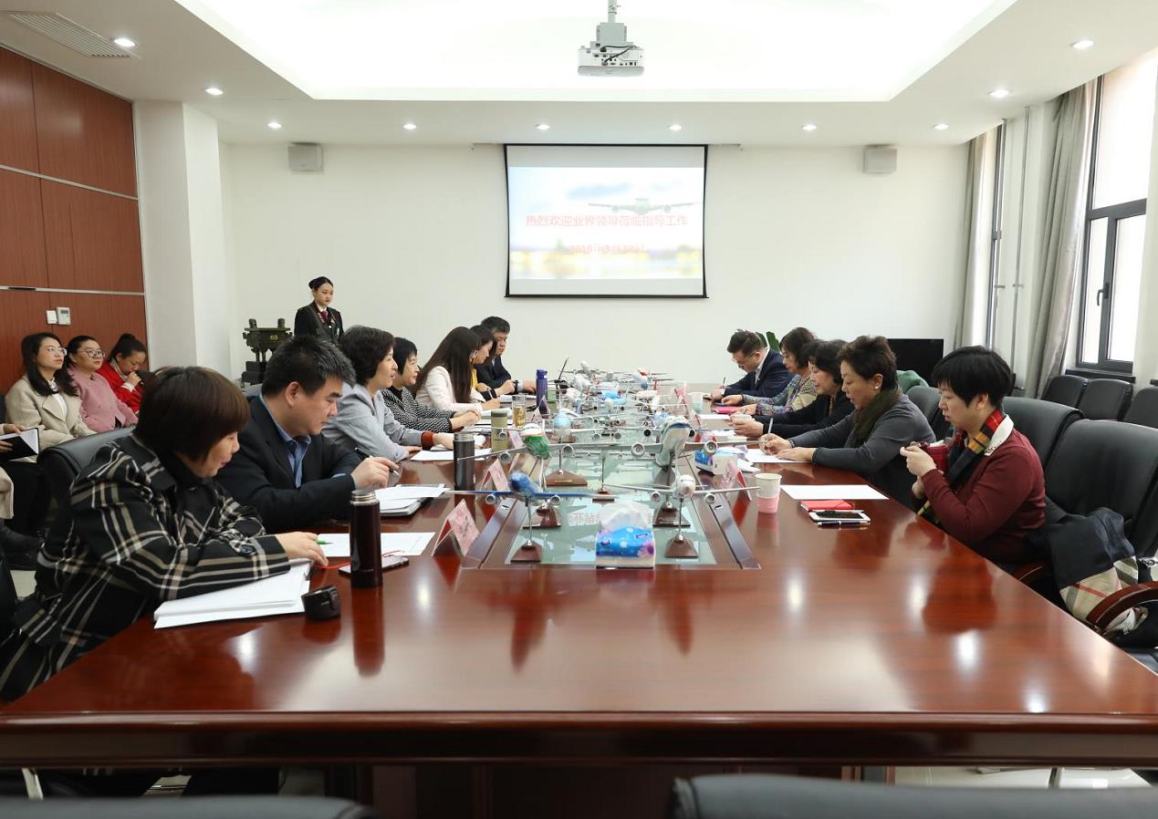 报告会前,来宾参观了乘务学院教学实验设施环境,与教师开展了座谈,就空乘学生德育教育、乘务员素质提升、空乘专业课程设置等内容进行深入交流。