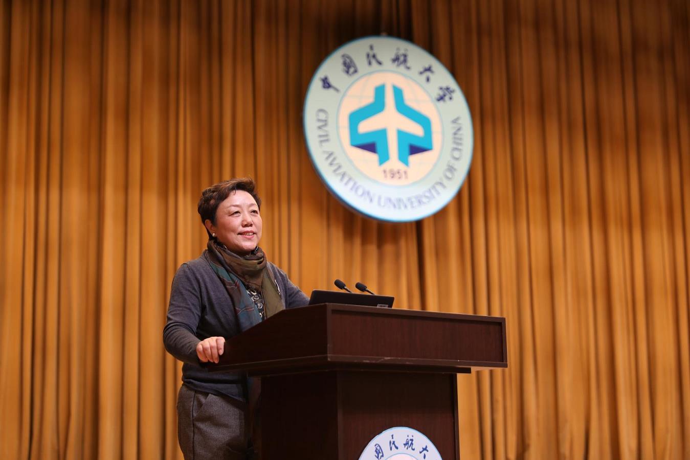 冯润娥女士以“客舱乘务队伍是推动民航发展的重要群体和核心力量”为题,从新中国民航史、“民航十八姐妹”等乘务老前辈开拓奋进的职业精神入手,指出乘务员要勇于担当行业使命,要立志做思想品德好、专业技能好、体质仪态好、文化素养好的“四好乘务员”,希望同学们能牢脚踏实地,为中国民航美好的未来奋斗。