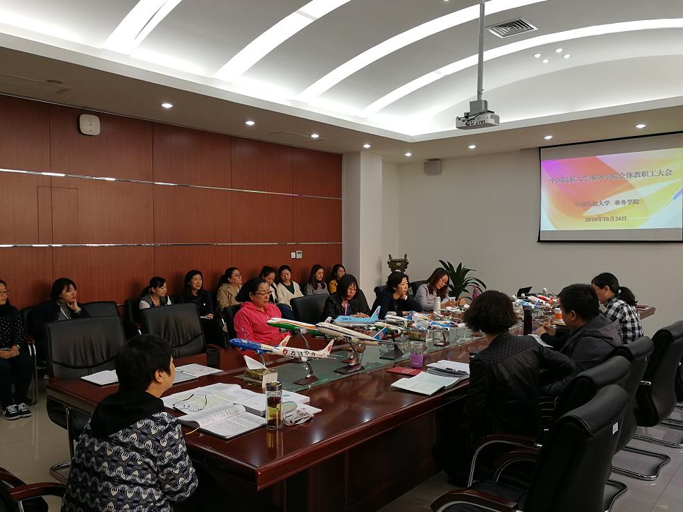 10月24日下午,乘务学院召开全体教职工会议,学习传达学校2018年教学研讨会精神,院党委书记刘冰书记主持。