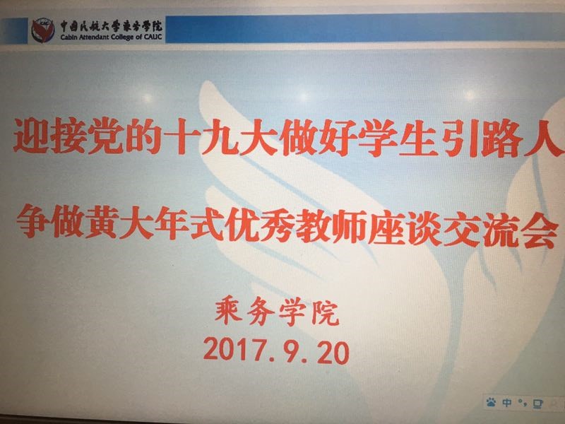 9月20日下午,乘务学院召开“迎接党的十九大,做好学生引路人”为主题的“争做黄大年式优秀教师”座谈交流会,学院党委书记刘冰主持会议,她简要介绍了黄大年教授的光辉事迹,号召大家学习黄大年的精神。