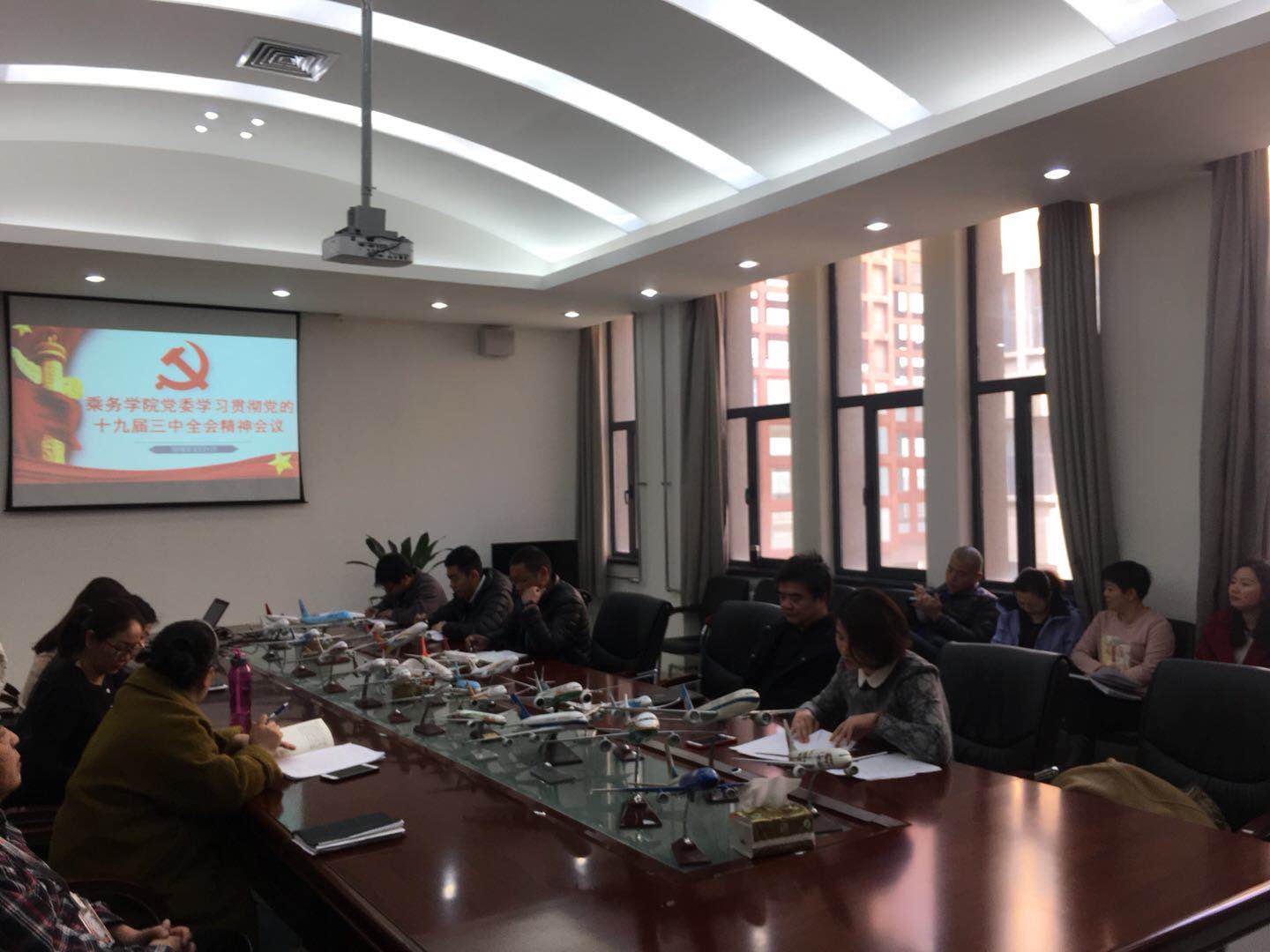 连日来,乘务学院党委通过多种形式学习贯彻党的十九届三中全会精神:3月21日院党委召开全体党员大会,院党委副书记于金艳传达全会精神并组织召开党员讨论会;3月23日下午,院党委书记刘冰为学生入党积极分子进行全会精神宣讲主题党课;3月26日,学院党委中心组召开专题学习会,院党委书记刘冰传达了习近平总书记在党的十九届三中全会上的讲话精神。
