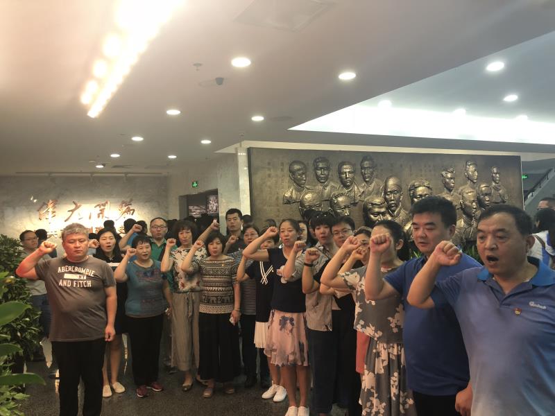6月9日清晨,同志们怀着激动的心情与来自祖国大江南北的数千人员静静等候在位于上海市黄陂南路374号的中国共产党第一次全国代表大会会址纪念馆门前,等待开馆。上午9点。准时开馆,一进入展厅,在巨型浮雕前,全体同志面向鲜艳的党旗,举起右拳,重温入党誓词;同志们在一幅幅展览介绍,一个个场景重现(雕塑、视频等)前认真聆听讲解,驻足观看,仿佛回到了近百年前风云际会、群雄逐鹿、思潮涌动的上海,似乎看到了无数仁人志士探求救国道路的奋斗……俄国十月革命一声炮响送来了马克思主义,中国共产党的成立,使中国革命的面目焕然一新。9日下午,同志们来到位于浙江嘉兴的南湖革命纪念馆,大家认真了解着中共一大从上海转至嘉兴南湖“红船”的过程,详细学习了中国共产党从一大到党的十九大历次大会的历程以及随之给中国革命、建设发展到繁荣富强的举世瞩目的成就,深受教育,更加坚定了永远跟党走的信念。