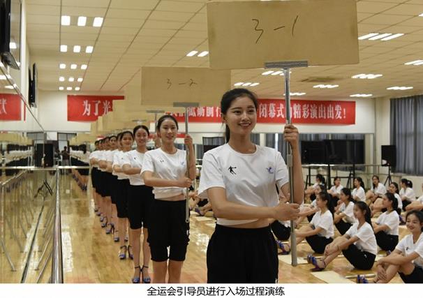 景一宏介绍说,中国民航大学从百余名学生中挑选出50名引导员。她们放弃暑假,全心为8月27日的第十三届全运会开幕式进行准备。同时,中航大也正在为8月7日举行的第十三届全运会柔道项目决赛进行着紧张的筹备。