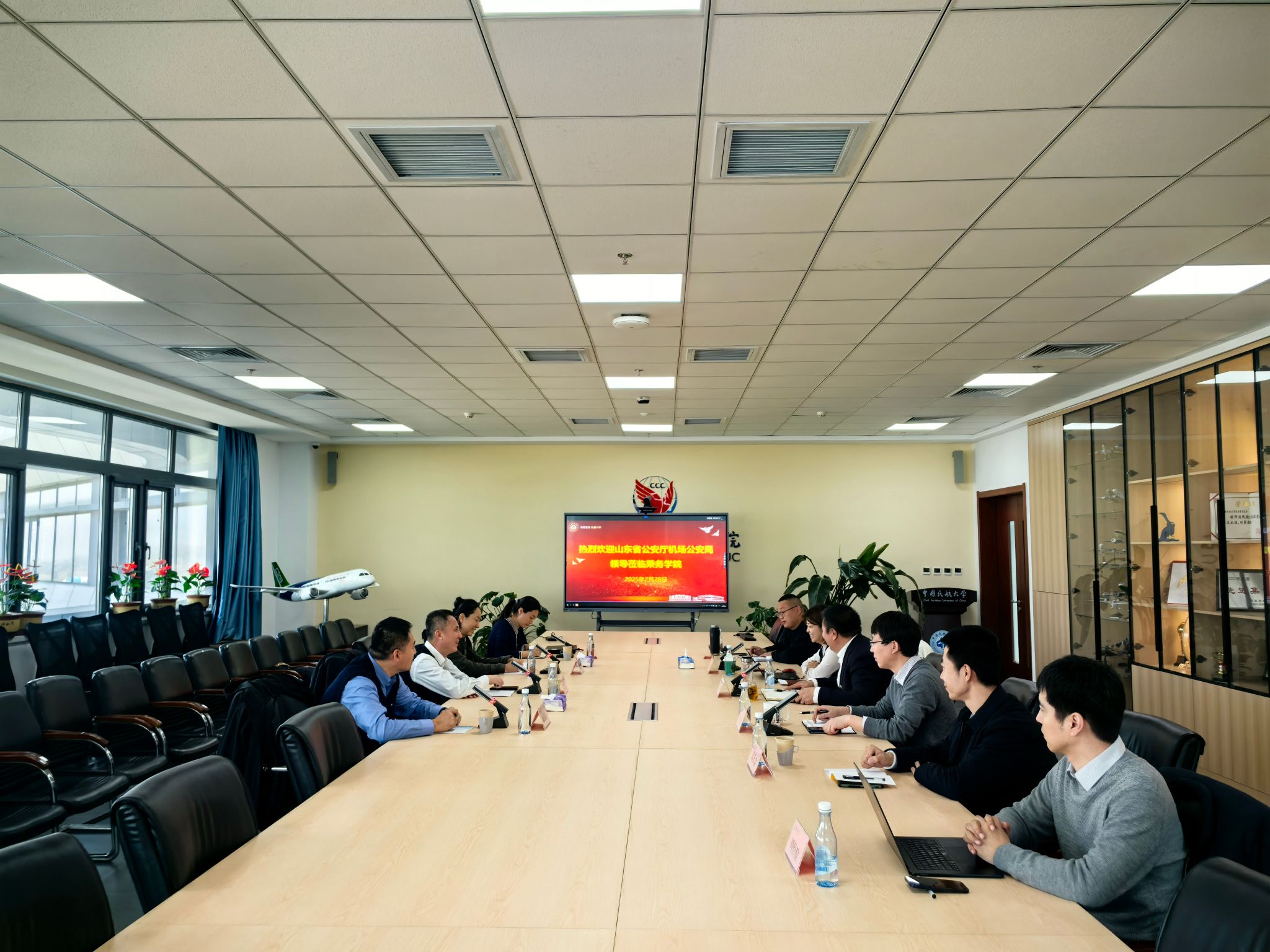 2月28日,山东省公安厅机场公安局党委书记、局长刘伟一行共4人来校调研考察,与校招办、乘务学院有关负责人围绕“民航安全教育转型与提升”“安防专业人才培养”“实训中心建设”“校局合作创新”等关键内容展开深入交流,旨在推动警、校协作迈向新高度。