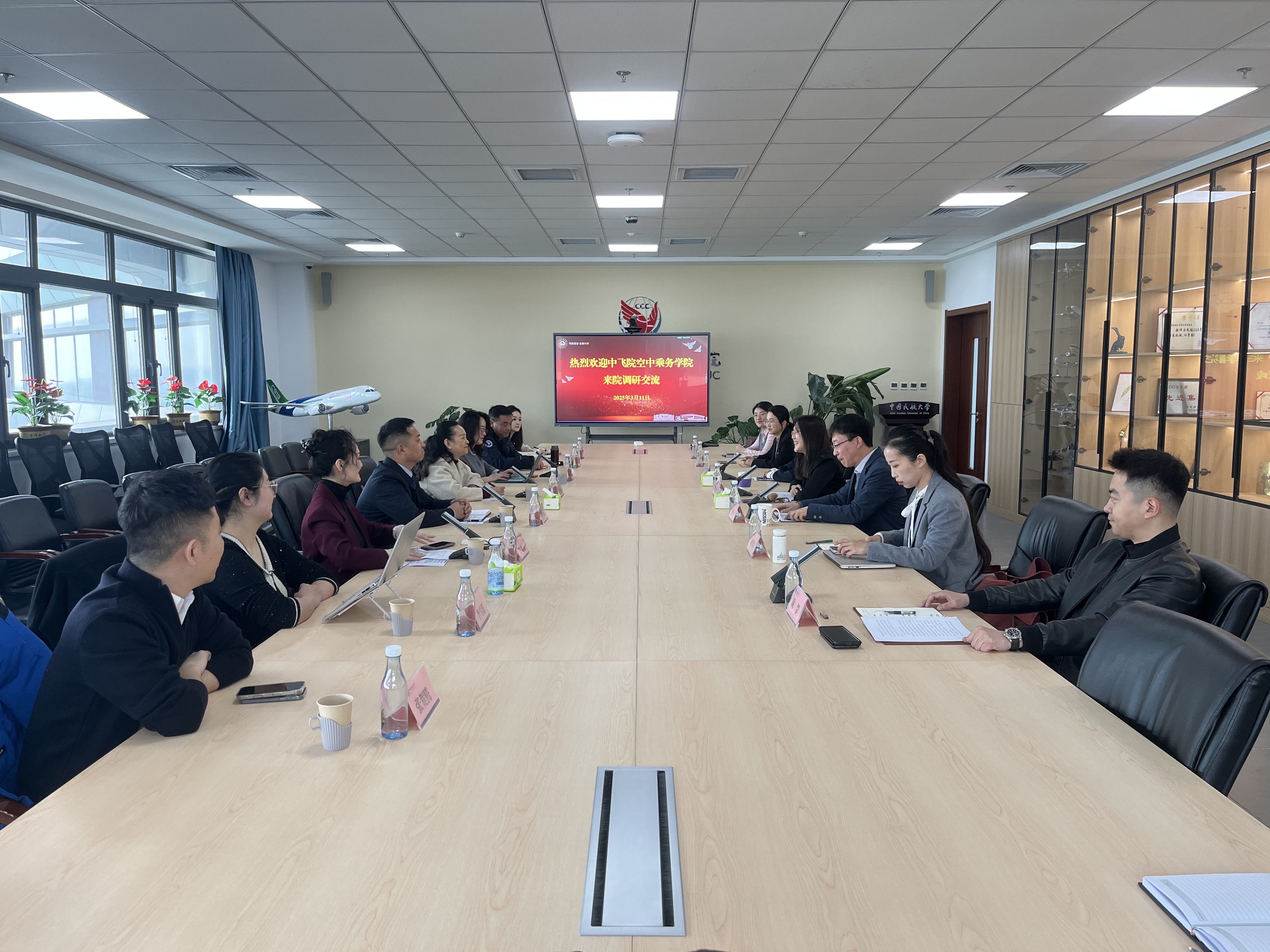 3月11日,中飞院空中乘务学院党委副书记李记、副院长蒋晓瑜一行8人来乘务学院调研交流。乘务学院领导班子成员、教研室、学工办有关代表参加。
