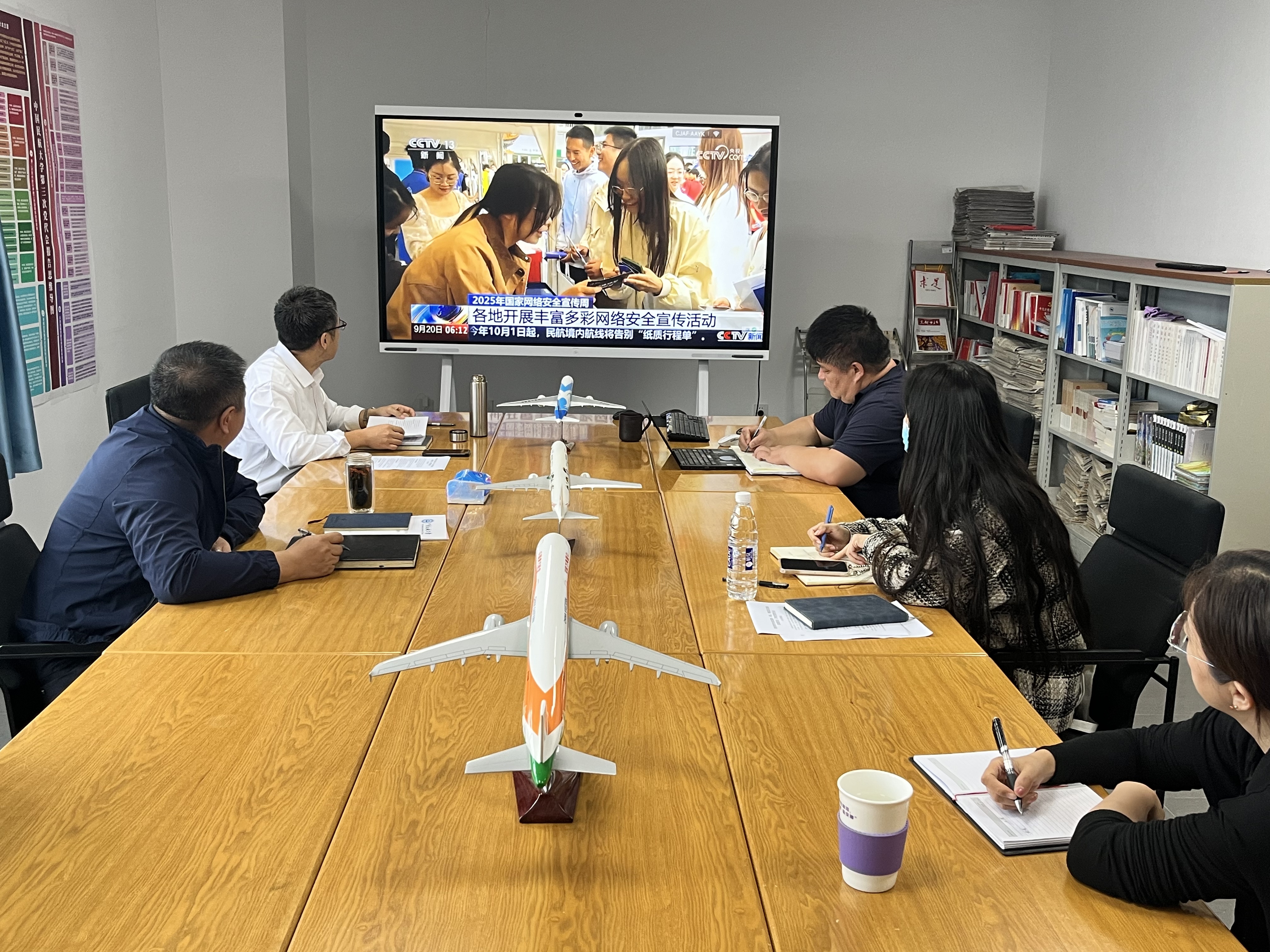 在2025年国家网络安全宣传周来临之际,为帮助师生树立正确的网络安全观,提升师生网络安全素养,乘务学院组织开展网络安全宣传教育主题活动。 9月17日中午,乘务学院召开全体会传达学习学校相关工作要求,组织观看《推进网络文明建设 汇聚强国复兴磅礴精神力量》《阔步迈向网络强国——筑牢网络安全屏障》教育宣传片,学习习近平总书记倡导的网络安全观,展现我国在网络安全顶层设计、体系建设、保障能力及全民网络安全意识和防护技能提升等方面取得的成就。