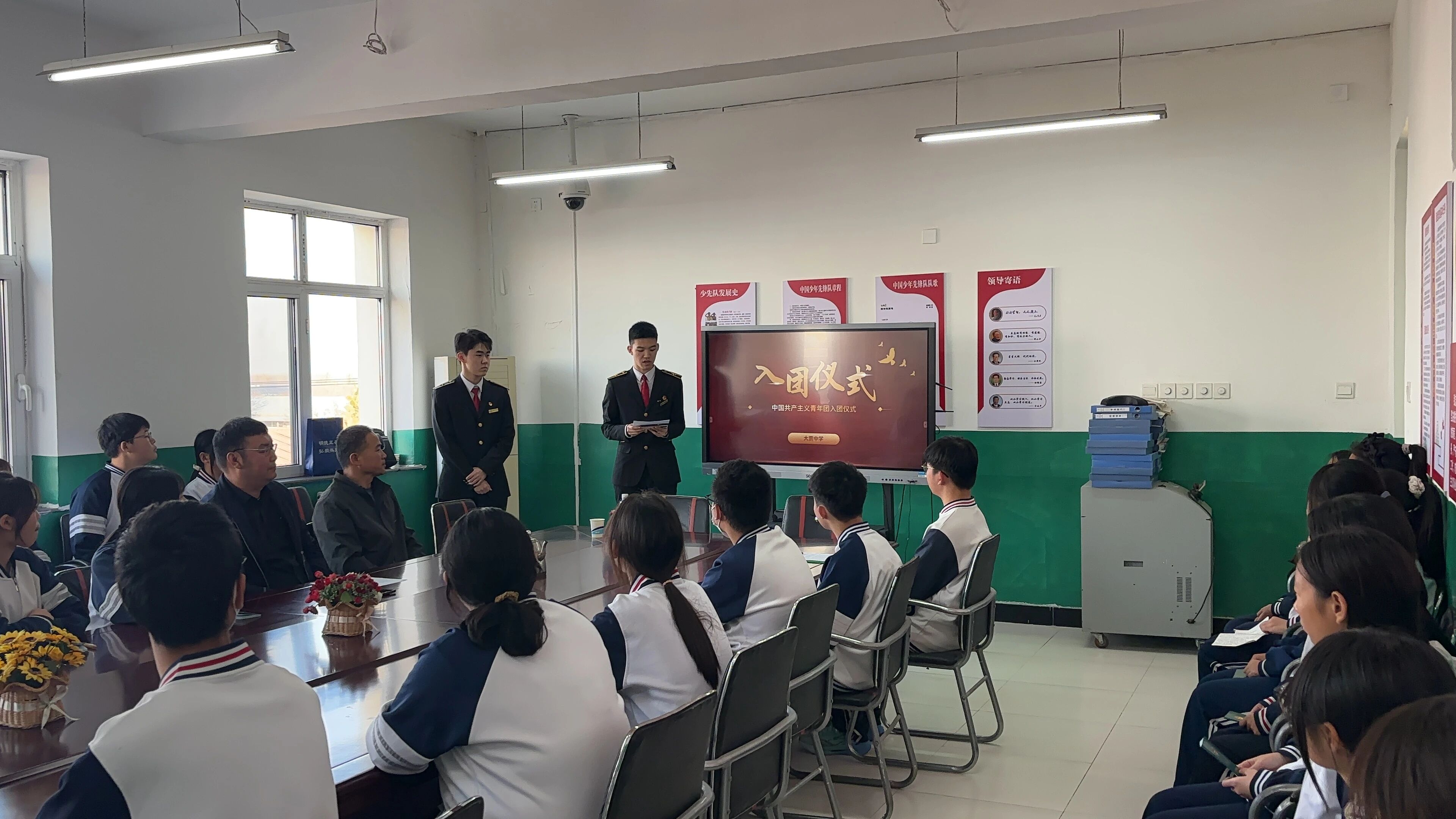 在激昂的团歌声中,潘庄镇大贾中学党支部书记、校长吴江楠,潘庄镇大贾庄学校专职副书记付增亮为19名新团员郑重颁发团员证书,佩戴团徽。面向鲜艳的团旗,他们跟随领誓人牛孝天举起右拳,庄严宣誓:“我志愿加入中国共产主义青年团,坚决拥护中国共产党的领导,遵守团的章程,执行团的决议,履行团员义务,严守团的纪律,勤奋学习,积极工作,吃苦在前,享受在后,为共产主义事业而奋斗。”铿锵有力的誓言在会场回荡,展现了新时代青年坚定的理想信念和精神追求。