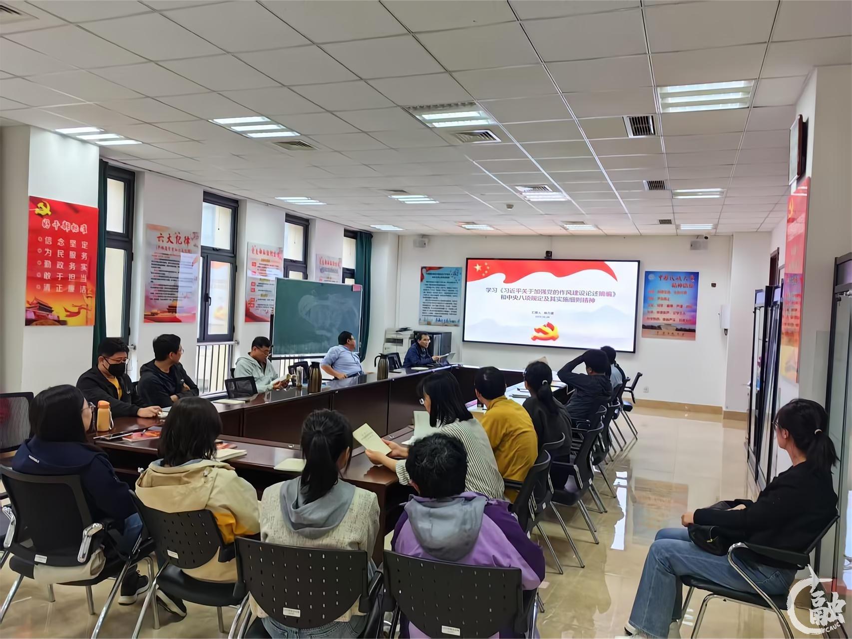 工会办党支部通过动员部署、专题学习、问题查摆等系列举措,织密作风“防护网”,共绘育人“同心圆”,强化支部党员作风建设,凝聚干事创业合力,激发支部党员在育人工作中担当作为。党支部邀请马克思主义学院贺国元讲授《党要管党、全面从严治党:新时代的党建逻辑——中央八项规定精神学习与解读》主题党课。党员们表示,这次学习教育的“动员令”,也是作风建设的“推进会”,支部党员深刻认识到要时刻保持警醒,坚守纪律底线,以更高标准、更严要求约束自己,以优良的作风全面提升工作能力和工作质量。