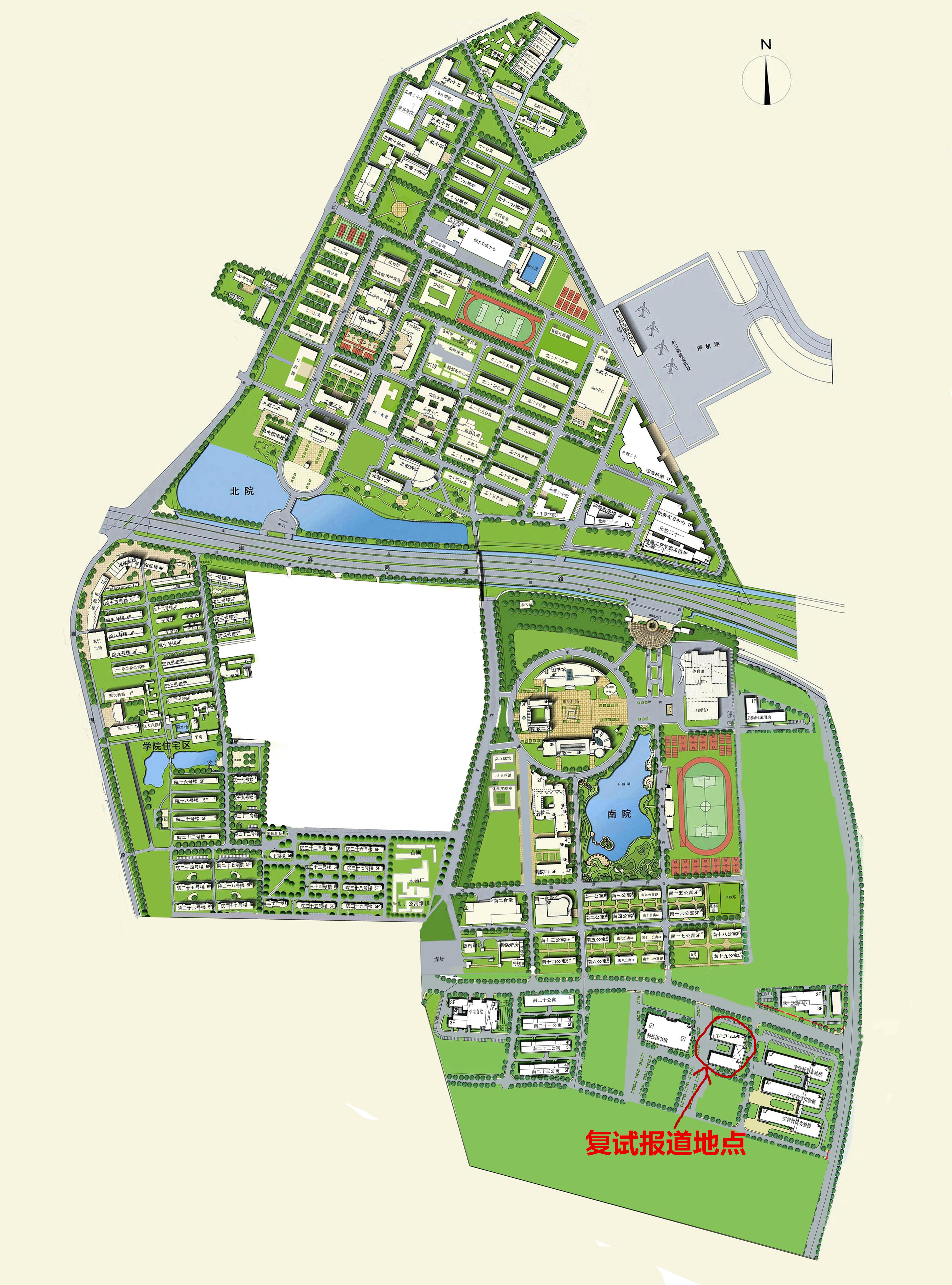 复试报到地点:中国民航大学南院海航科技大厦E201房间