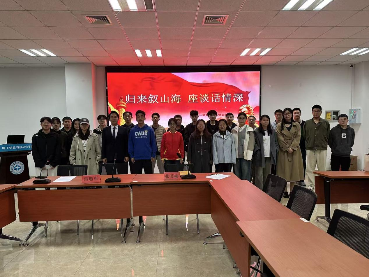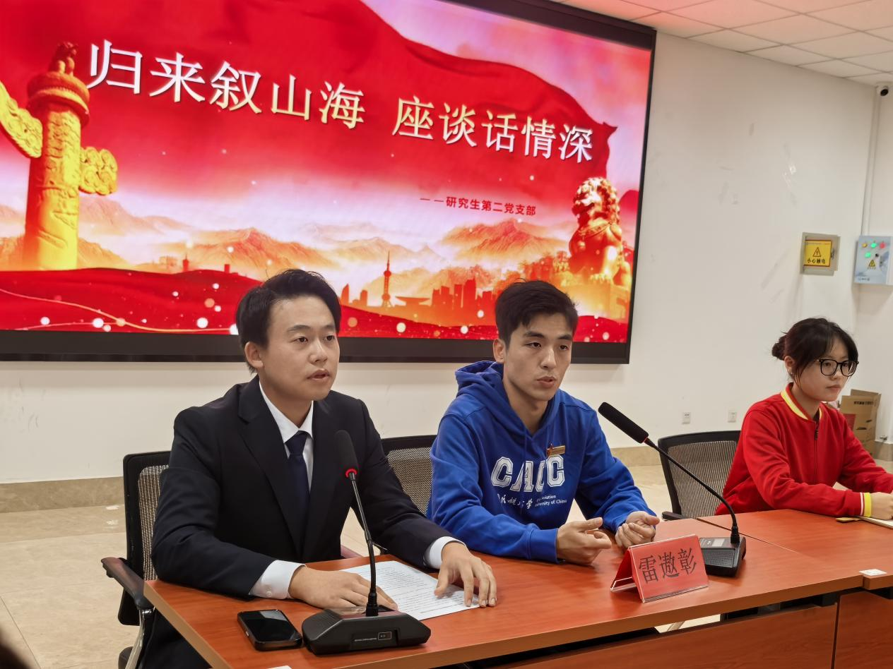 2025年10月12日,中国民航大学电动学院研究生第二党支部以“归来续山海,座谈话情深”为主题,举办了一场温情而深刻的座谈会,这次座谈会是以“书香联动东西,青春共赴山海”为主题的精品党日的后续和回响。支部邀请中国民航大学第三期研究生支教团成员雷遨彰,和支教团成员、天津市第八期“青马工程”学员张若楠同志,与支部党员分享了他们在西部大地上的耕耘与收获。
