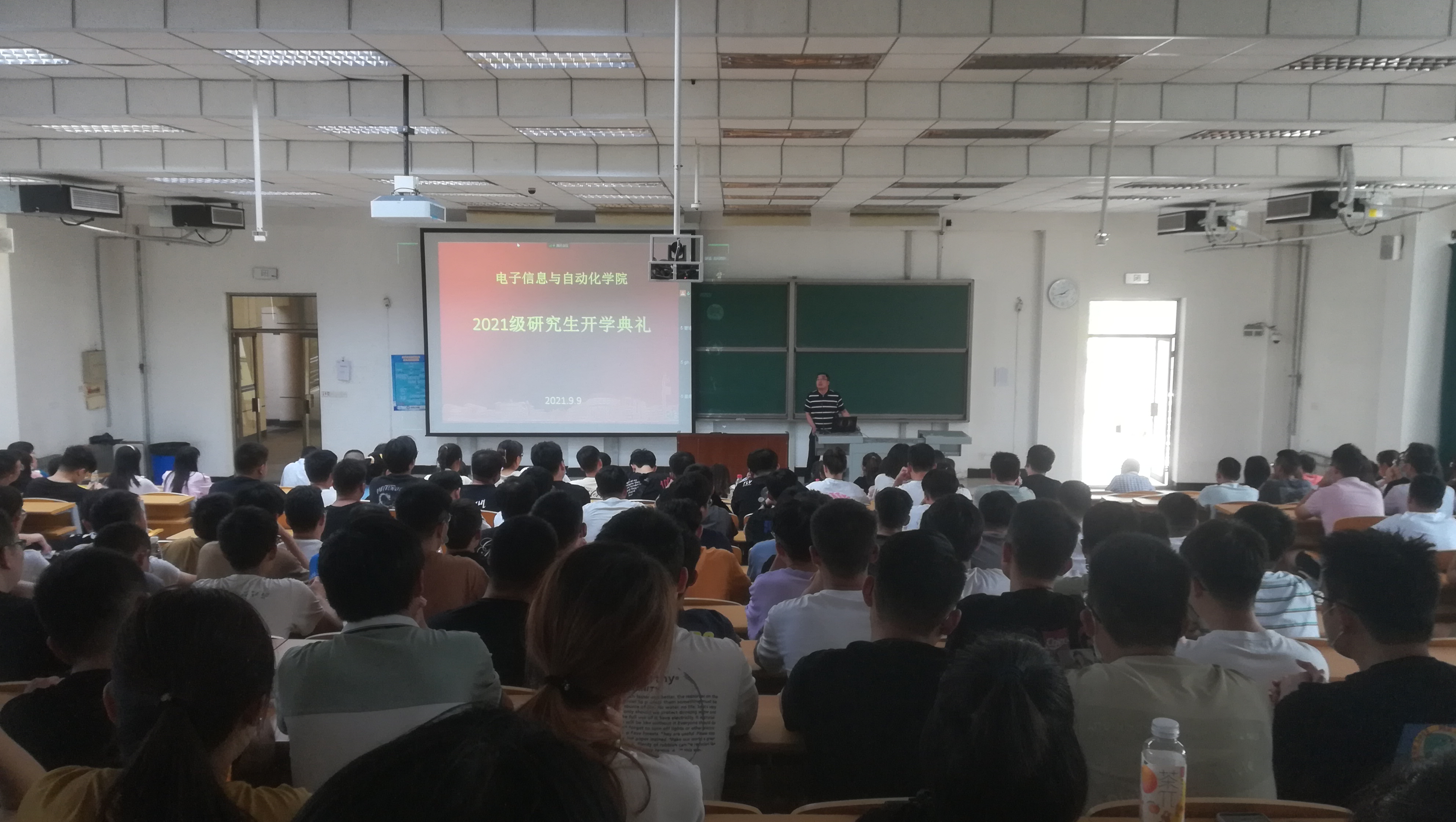 在庆祝中国共产党成立100周年暨中国民航大学建校70周年之际,电子信息与自动化学院2021级研究生开学典礼于9月9日下午以线上线下同步的方式举行,线下会场设在南教三203。电子信息与自动化学院院长韩萍,副院长邢志伟、宫峰勋,党委副书记杨俊杰,及2021级全体硕士研究生参加了本次开学典礼。