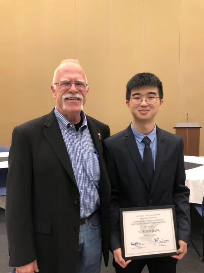 在4月19日举行的美国安柏瑞德航空航天大学(Embry-Riddle Aeronautical University)年度优秀学生颁奖典礼上,我校电信自动化学院赴该校留学的江宇山同学获得了最佳研究生奖,本奖项每个专业仅一个名额。江宇山同学是继我院张燕同学在该校获得最佳研究生奖后第二位获此殊荣的毕业生,该校也为我校送去的如此优秀学生表示感谢!