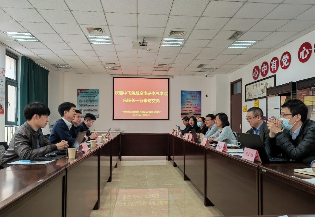 3月16日,中国民用航空飞行学院航空电子电气学院院长朱新宇一行来我院调研交流,就工程认证、一流专业建设、虚拟教研室、实验室建设、学科建设及研究生培养、学生管理等工作进行研讨。航空电子电气学院副书记韩小波,电气系主任刘希军、电子系负责人张华忠参加,电子信息与自动化学院院长韩萍,副院长卢晓光、邢志伟,副书记杨俊杰及专业负责人、实验室主任与来宾会谈交流。
