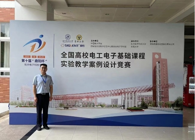 近日,第十届“鼎阳杯”全国高校电工电子基础课程实验教学案例设计竞赛复赛(后简称“鼎阳杯”)在杭州电子科技大学顺利举办。我院张树参加本次比赛,并荣获三等奖。这是我院教师连续三年获得该竞赛国家级奖项。