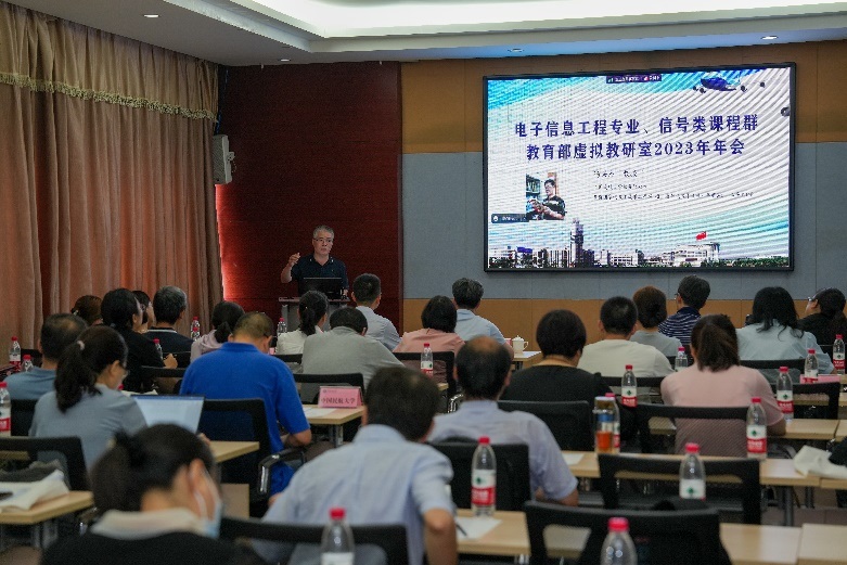 为促进我校教育部虚拟教研室建设和发展,加强虚拟教研室成员单位之间的交流,共同进步,2023年6月17日,电子信息工程专业虚拟教研室和信号类课群虚拟教研室在中国民航大学学术交流中心一会议室联合召开了2023年年会。中国民航大学杨新湦副校长、教务处冯兴杰处长、十四个高校的虚拟教研室成员单位代表、我校电子信息与自动化学院卢晓光副院长、电子、电气及通信专业负责人、两个虚拟教研室教师线上线下共计六十余人参会。