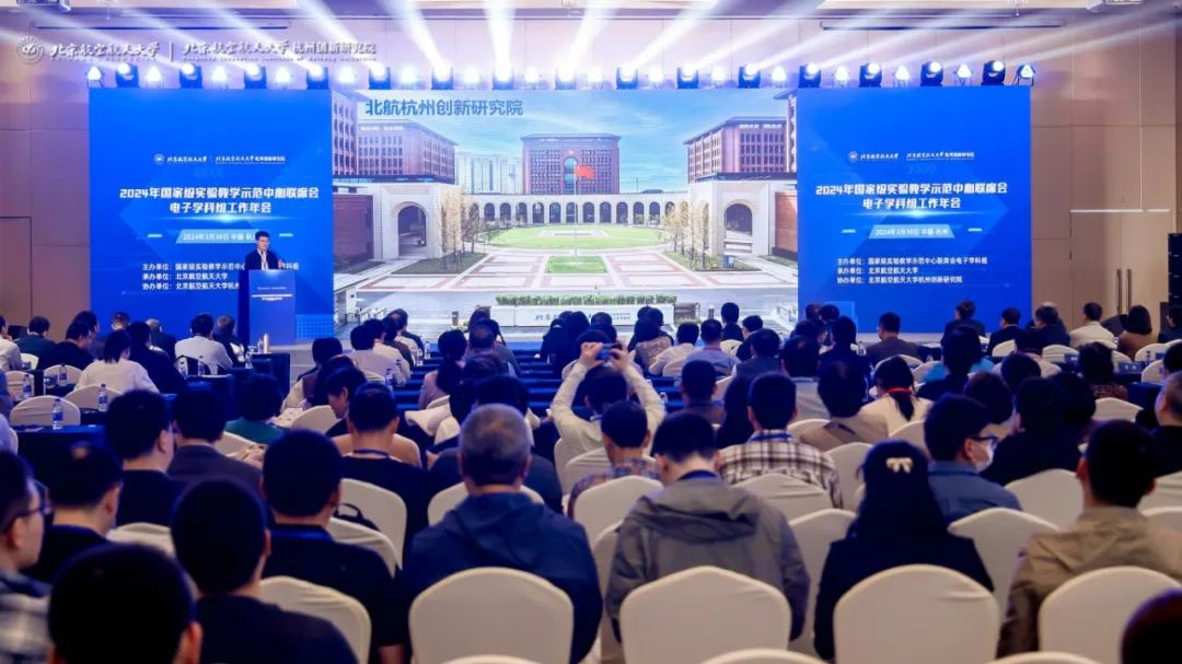 2024年3月30日,由国家级实验教学示范中心联席会电子学科组主办,北京航空航天大学杭州创新研究院承办的“2024年国家级实验教学示范中心联席会电子学科组工作年会”在杭州召开。本次年会共有来自全国29个省市自治区直辖市的287位教师代表参加。韩萍院长带领学院两个市级示范中心6名骨干教师参加了此次会议。