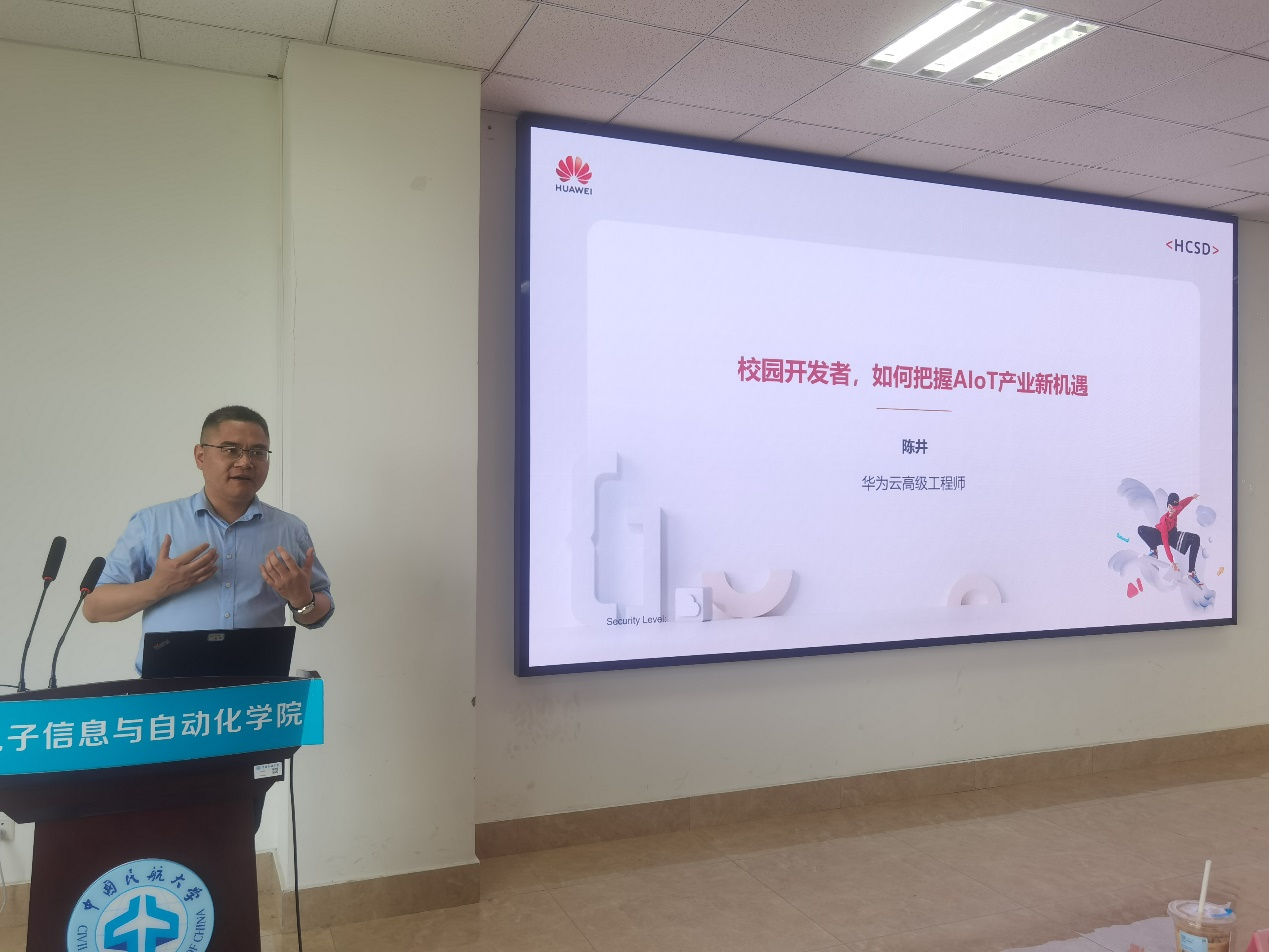 华为云高级工程师陈井,围绕“校园开发者,如何把握AloT产业新机遇”的主题,为师生们介绍了华为云在物联网领域的创新实践,并分享了校园开发者如何把握物联网产业新机遇的见解。