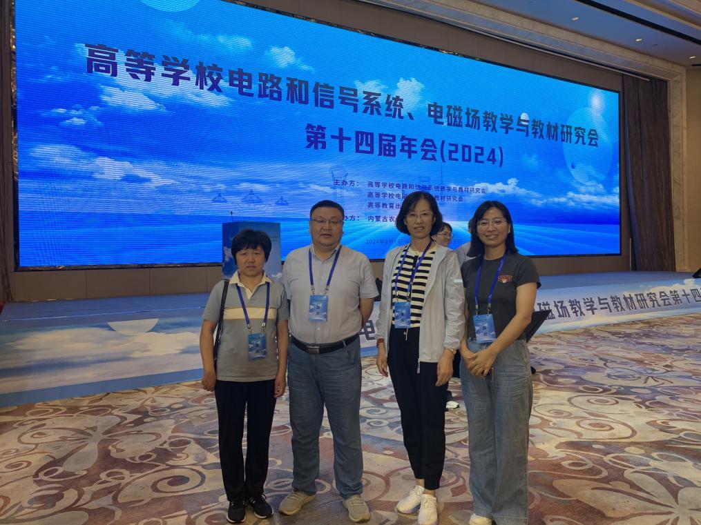 2024年8月1日至4日,由高等学校电路和信号系统教学与教材研究会、高等学校电磁场教学与教材研究会及高等教育出版社主办,内蒙古农业大学承办的高等学校电路和信号系统、电磁场教学与教材研究会第十四届年会在内蒙古呼和浩特顺利召开。来自全国近百所院校的近300名教师参加了本次会议。本届年会的主题是:优化课程内容,建设精品教材,强化能力培养,探索教学智能。会议内容主要分为大会报告、专题研讨、课程论坛、墙报展示及教学竞赛等五个环节。为提升相关核心课程的教学能力,激发教师投入课程建设和教学研究的热情,院长韩萍、副院长卢晓光及相关课程教师庞勇、冯青、左盼盼出席了本届年会。