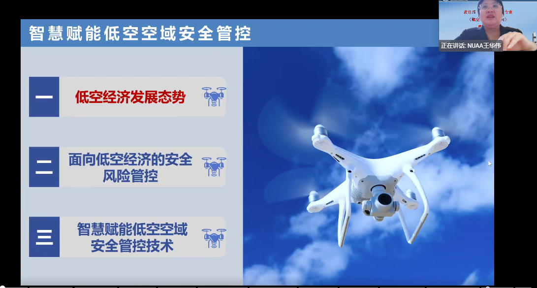 王华伟教授的讲座覆盖了低空经济发展态势、面向低空经济的安全风险管控、智慧赋能低空空域安全管控技术三大核心领域。她详细阐述了低空经济的发展规模、路径选择以及空域高效安全利用对低空经济发展的重要性。王教授以全系统、全链条的低空运行风险控制动态画像技术为指导,介绍了低空运行风险智能监控服务平台的建设基础,并在此基础上,进一步拓展到主动的风险管理。并展示了如何利用大数据模型技术,实现管控措施的集成性增强、系统性风险认知的提升、数据深度挖掘的提高以及全链条风险系统管理的完善,为低空空域安全管控提供智能决策支持,进而支撑多系统智慧协同安全管理。