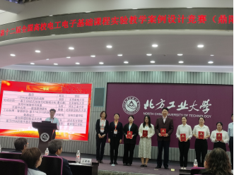 近日,第十二届全国高校电工电子基础课程实验教学案例设计竞赛(“鼎阳杯”)华北赛区竞赛暨教学研讨会在北方工业大学成功举办。我院组织学校教师参加,来自我院和工程技术训练中心共7支参赛队伍脱颖而出,共斩获一等奖2项、二等奖2项及三等奖3项的优异成绩,我校获得优秀组织奖,我校教师曹芸茜作为一等奖代表在闭幕式发言。