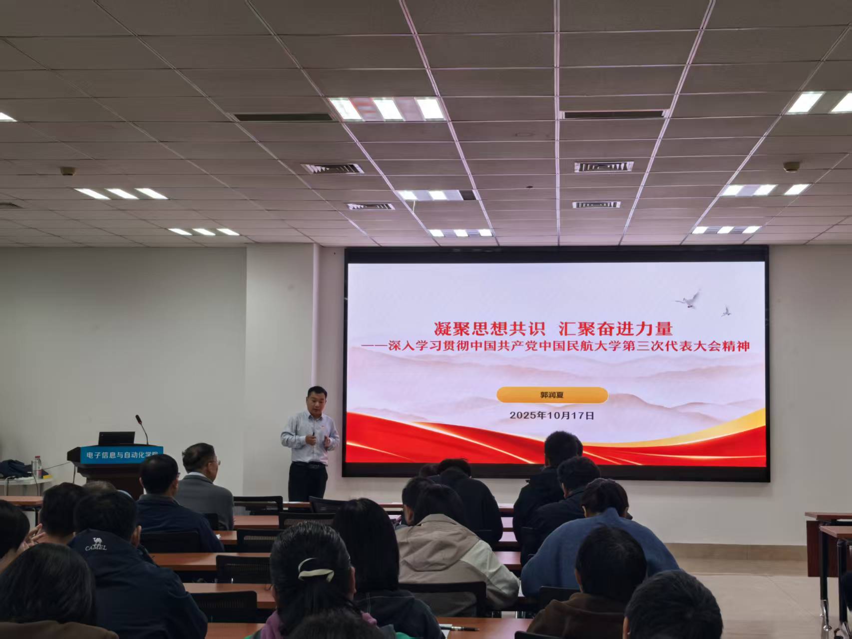 10月17日下午,电子信息与自动化学院召开学校第三次党代会精神宣讲会,校党委委员、发展规划与学科建设处处长郭润夏教授进行宣讲,学校各学科负责人、电子信息与自动化学院全体教工党员参加。