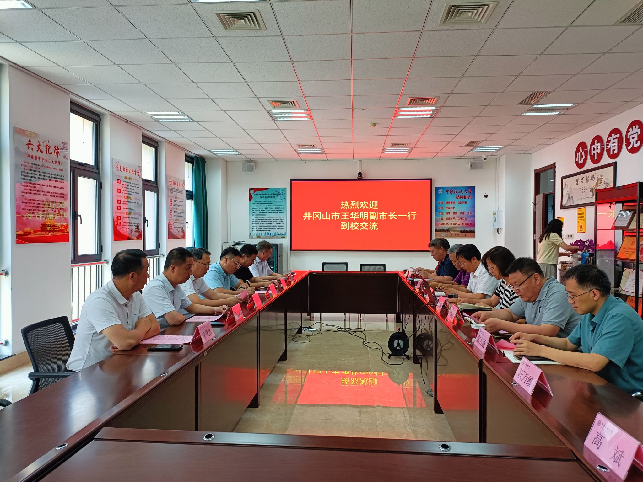 会上,李双宝处长首先介绍了学校发展定位和工作布局。随后,韩萍院长系统介绍了学院主要情况,重点围绕学科建设、科研成果和发展定位等方面介绍了学院近些年取得的发展成果。学院教师代表介绍了助航灯光设计与研究过程中的关键问题,以及通用航空和低空运行中通信、导航、监视等领域的技术问题。双方围绕相关技术领域发展问题,针对井冈山市特色产业开展低空经济的优势和存在的缺陷,开展了深入的交流探讨。井冈山市王华明副市长发言表示希望与电子信息与自动化学院开展深入合作,加强低空产业和技术领域合作开发。韩萍院长在总结发言中表示电子信息与自动化学院在民航通导监和自动化系统领域具有长期积累和显著技术优势,希望能够为井冈山革命老区航空产业发展贡献力量。