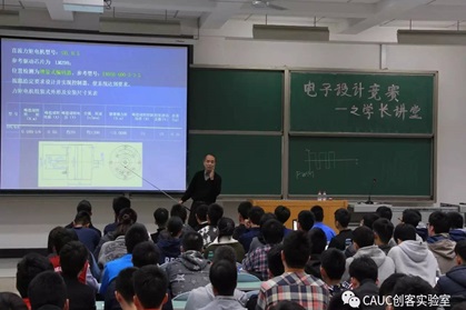 控制类——华克强教授主讲 信号类——黄建宇老师主讲 四旋翼类——杨大鹏老师主讲 仪器仪表类——夏冬老师主讲 好啦,同学们,现在培训结束了,你们是否已经对即将来临的电设大赛迫不及待的想去尝试了呢,那就准备好比赛所需的器材,构建好思路吧!同时在比赛中遇到问题,大家还可以向负责各个项目答疑的大四学长请教。
